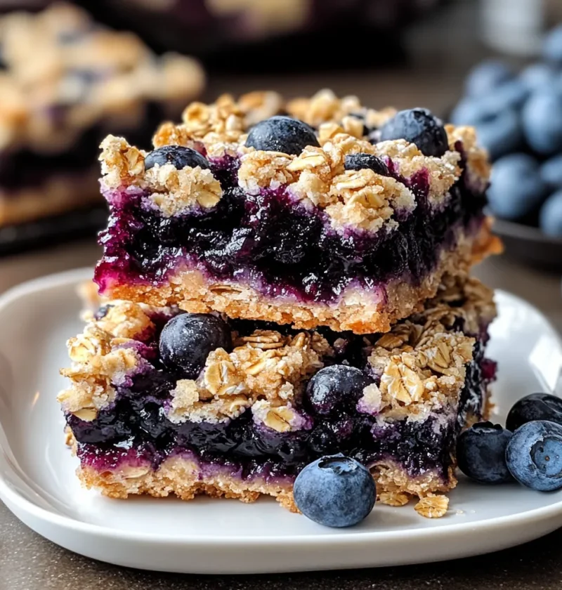 Diese Blaubeer-Haferflocken-Riegel bestehen aus einer knusprigen Haferbasis, einer fruchtigen Blaubeerschicht und einer leichten Streuselschicht obenauf. Das Backen sorgt für goldbraune Oberflächen, während die Blaubeeren innen saftig bleiben. Ein einfaches, aber unglaublich leckeres Rezept, das garantiert zum Lieblingssnack wird.