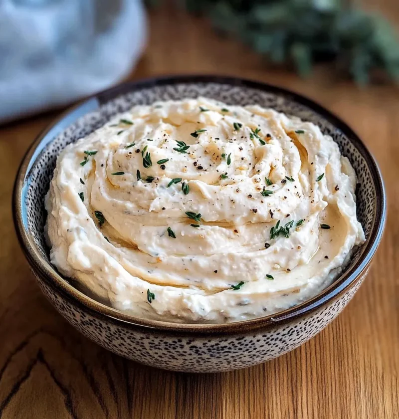 Nach dem Kühlen kann der Frischkäse direkt verwendet werden – als Dip, Brotaufstrich oder Beilage zu Gemüse und Crackern.
