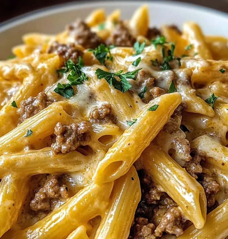 Cremige Hochprotein-Rindfleisch-Pasta für Genießer