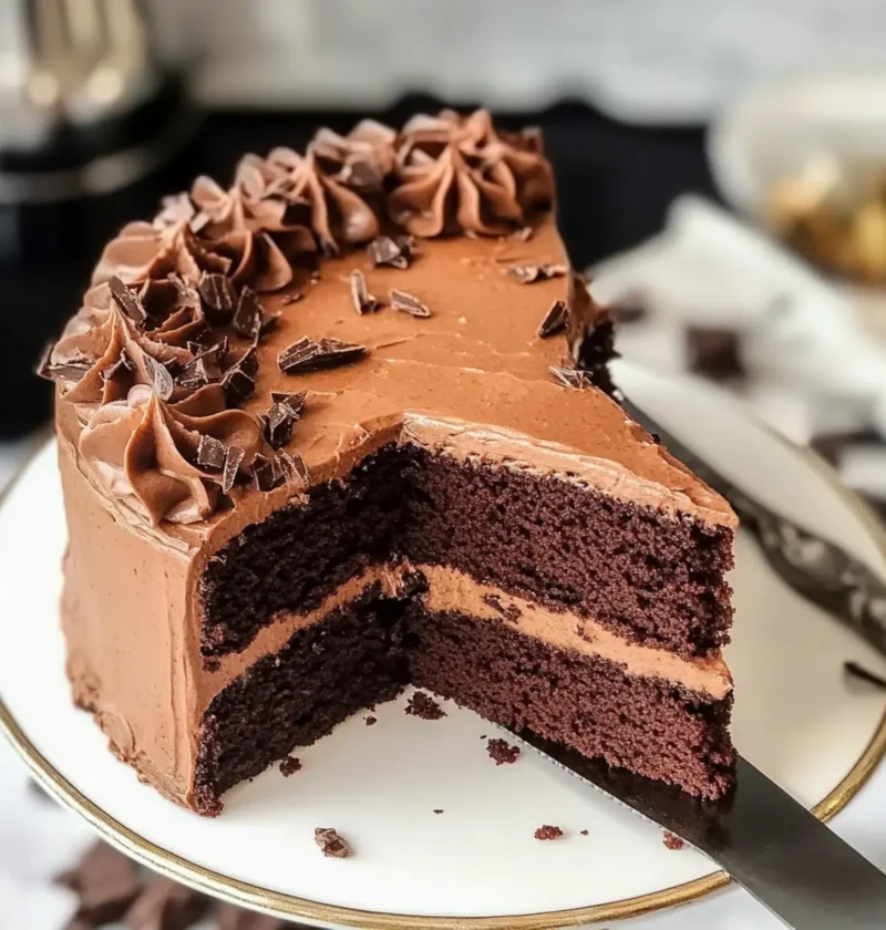 Frostieren Sie die Oberseite und die Seiten des Kuchens gründlich mit der restlichen Buttercreme. Nutzen Sie einen Spritzbeutel, um dekorative Buttercreme auf die Ränder zu spritzen und geben Sie nach Belieben Schokoladenspäne oder Nüsse darüber, um den perfekten Abschluss für Ihren Eierlosen Schokoladenkuchen zu schaffen.