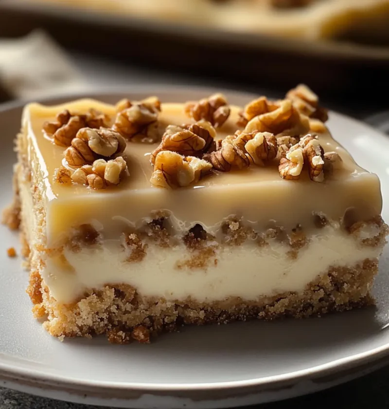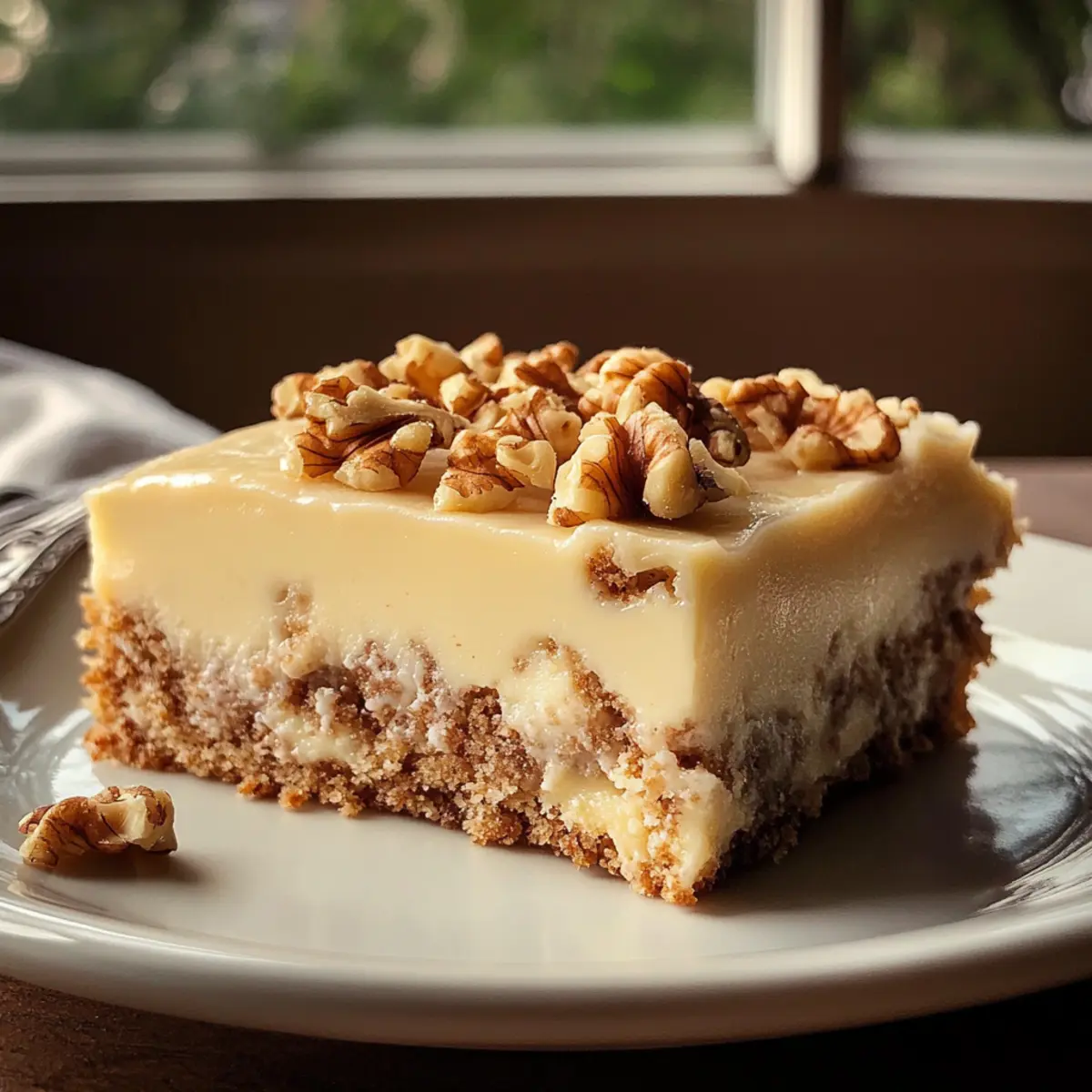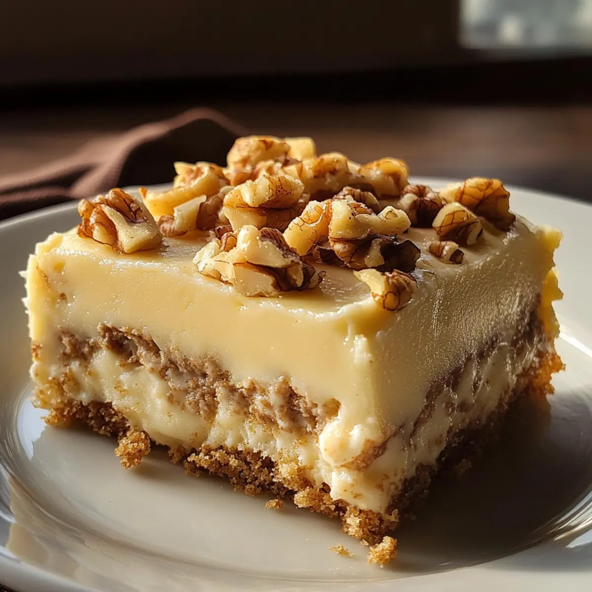 Himmlische Geschmackskombination: Die Kombination aus knusprigem Boden, cremigem Pudding und knusprigem Walnusstopping sorgt für ein unvergleichliches Geschmackserlebnis.