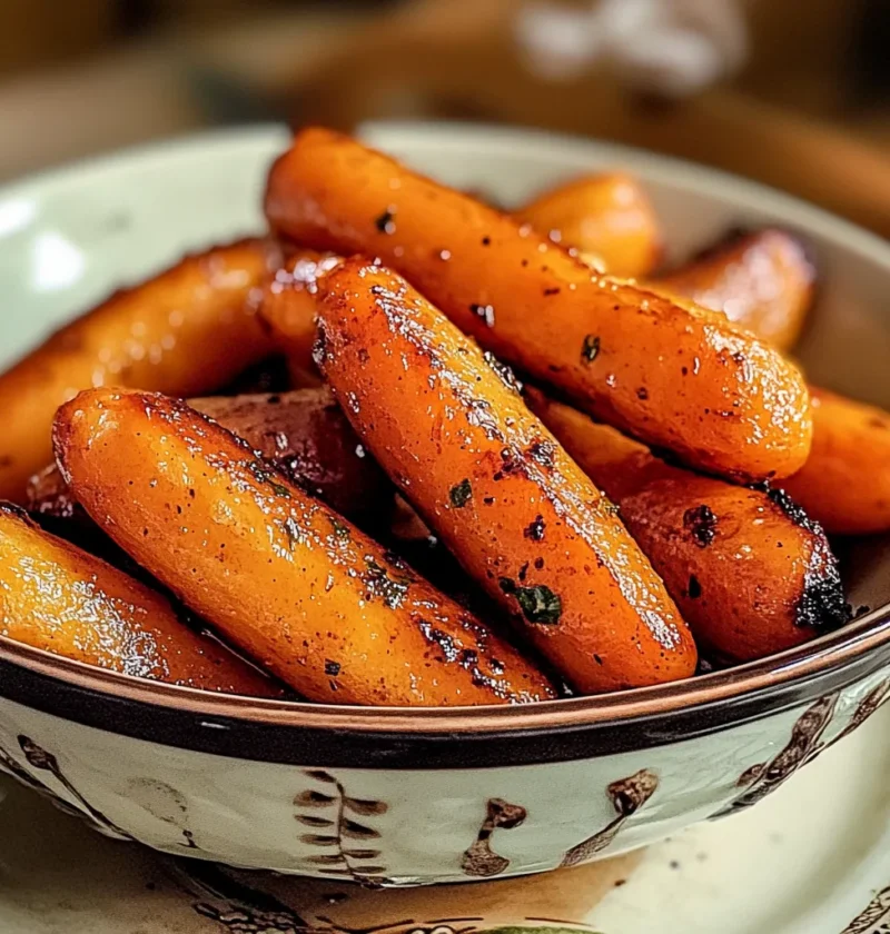 Dieses Gericht besteht aus im Ofen gerösteten Möhren, die anschließend in einer Mischung aus Butter, Knoblauch und Honig geschwenkt werden. Thymian sorgt für eine aromatische Note und rundet das süß-herzhafte Profil perfekt ab.