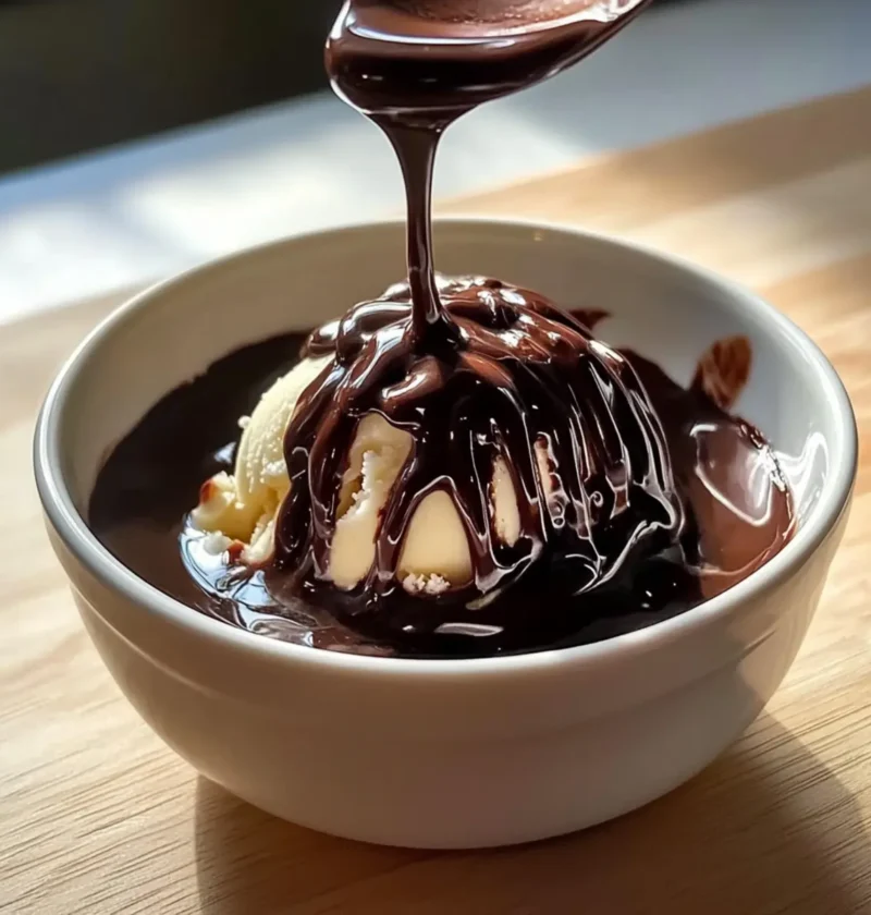 Diese Schokoladensoße ist perfekt für Eis, frische Früchte oder andere Desserts und kann bis zu zwei Wochen im Kühlschrank aufbewahrt werden.