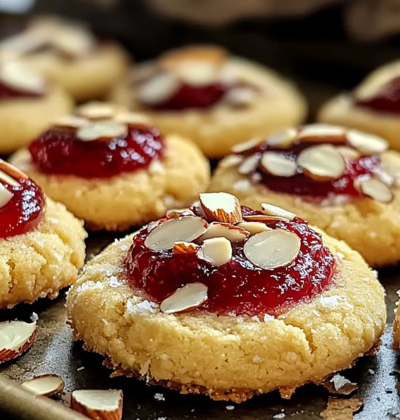 Einfachheit, die begeistert: Die Zubereitung der Himbeer-Mandel-Daumenabdruck-Kekse erfordert nur grundlegende Backfähigkeiten, sodass jeder sie meistern kann.