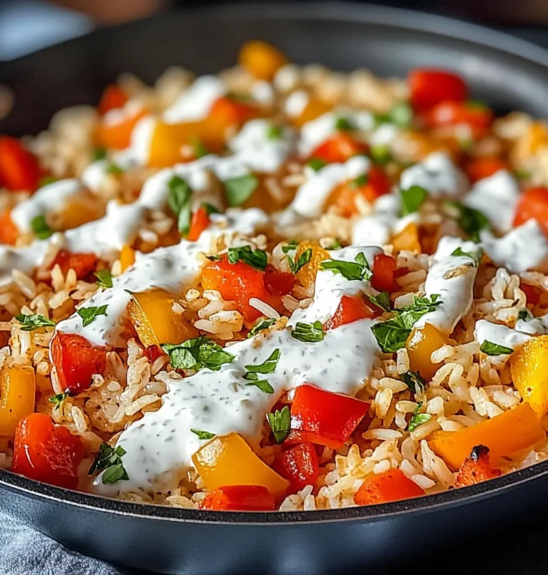 Paprika-Reis-Pfanne mit Joghurtsoße schnell genießen