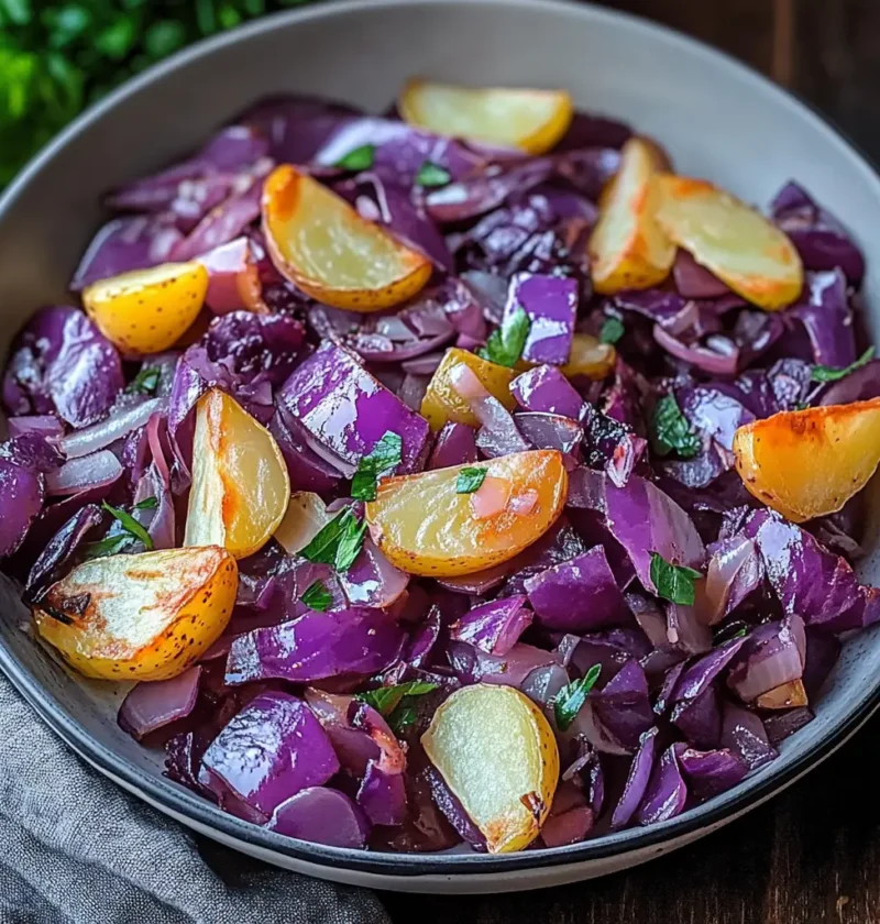 Manchmal sind es die einfachen, bodenständigen Gerichte, die uns am meisten begeistern – und die Rotkohl-Pfanne mit Kartoffeln ist genau so ein Rezept. Sie verbindet die süßlich-herben Aromen von Rotkohl mit der dezenten Erdigkeit der Kartoffeln und wird durch Zwiebeln, Knoblauch und feine Gewürze perfekt abgerundet. Für viele ist dieses Gericht ein typisches Herbst- oder Wintergericht, das wärmt, satt macht und dabei noch gesund ist.
